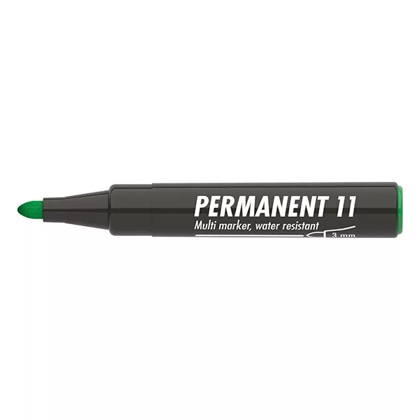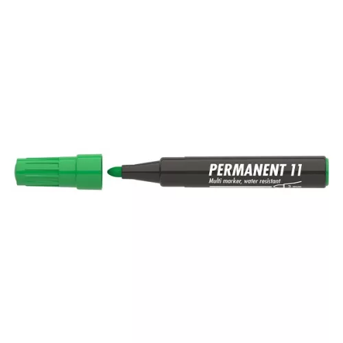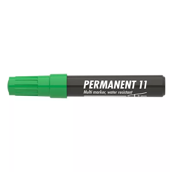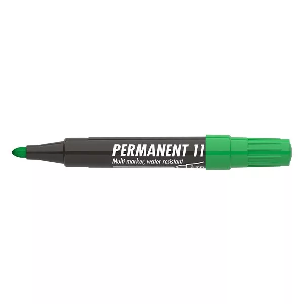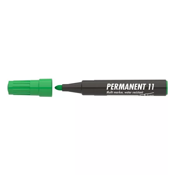 Műanyag, üveg, fém, fa illetve szinte minden felület feliratozására , jelölésére alkalmas, alkoholbázisú festékkel töltött permanent marker. Írásképe száradás után törlés-és vízálló. Kerekített csúccsal, klipszes kupakkal. Vonalvastagság: 3 mm