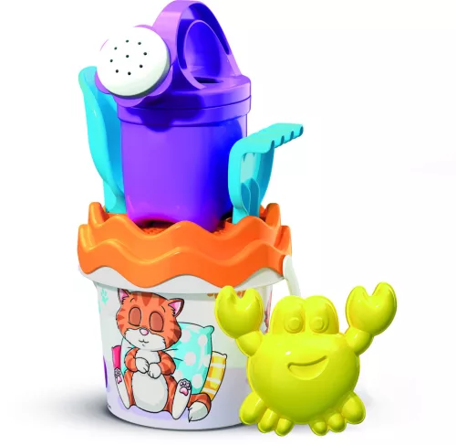 Ez a bájos, cicás homokozókészlet garantáltan elnyeri a gyerekek tetszését. A készletben található alvó cicus forma és az öntözőkanna segítségével a gyerekek különleges homokvárakat és homokdesszerteket készíthetnek, és eljátszhatják a kedvenc állatgondozós jeleneteiket.