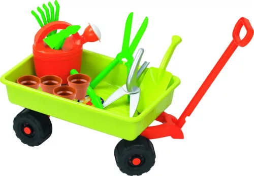 • Kreatív játék: A kiskocsi és az eszközök számtalan lehetőséget kínálnak a kreatív játékra, a gyerekek eljátszhatják a kis kertészt, aki gondozza a növényeket.