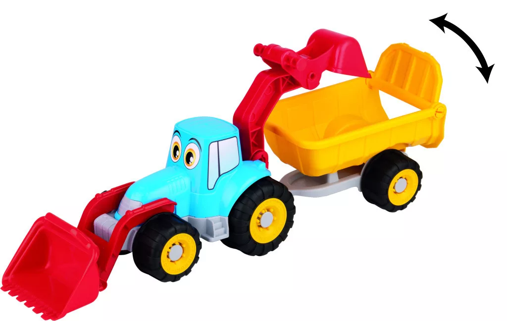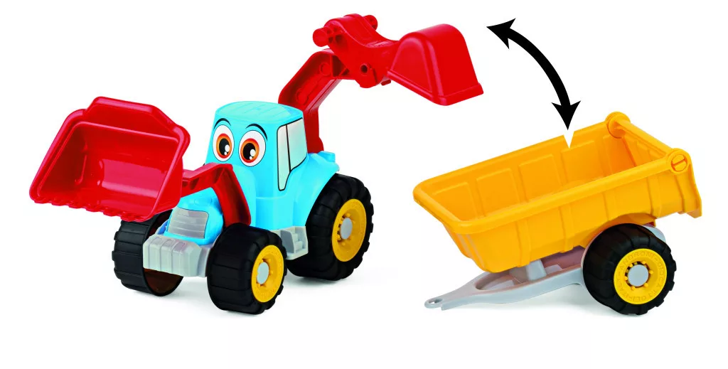 • Kültéri és beltéri szórakozás: A markoló és az utánfutó strapabíró anyagból készült, így a homokozóban és a szobában is bátran használható.