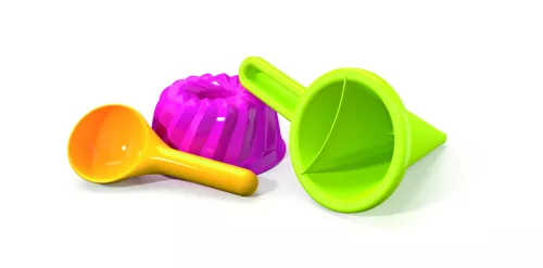 • Kreatív játék: A kuglófformával és az adagolótölcsérrel a gyerekek különleges homokdesszerteket készíthetnek, és fejleszthetik a kreativitásukat.