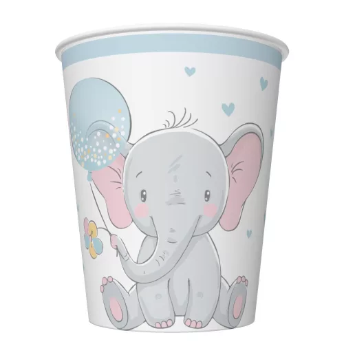 Baby elefánt Blue Balloon papír pohár 8 db-os 250 ml