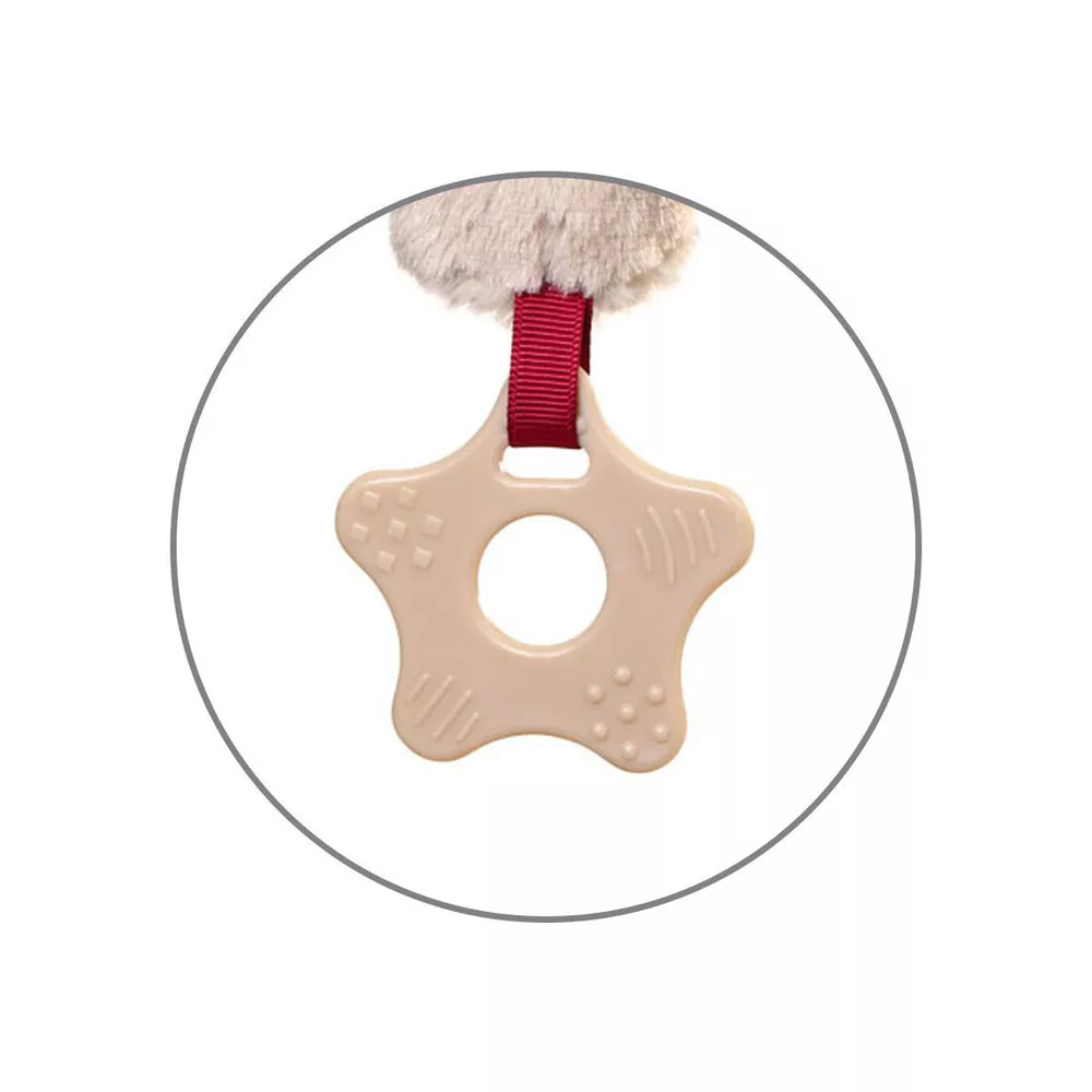 - fejleszti a vizuális, hallási és motoros koordinációt- a sípoló hang felkelti a baba érdeklõdését, és megtanítja az ok-okozati összefüggést- segíti a csecsemõket motoros és kézi készségeik gyakorlásában (megragadás, egyik kézbõl a másikba továbbítás)Mérete: kb.: 25 6,5cmAnyaga: 100% poliészter