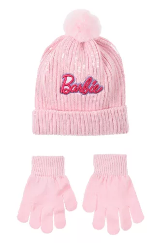 Barbie flitteres gyerek sapka + kesztyű szett