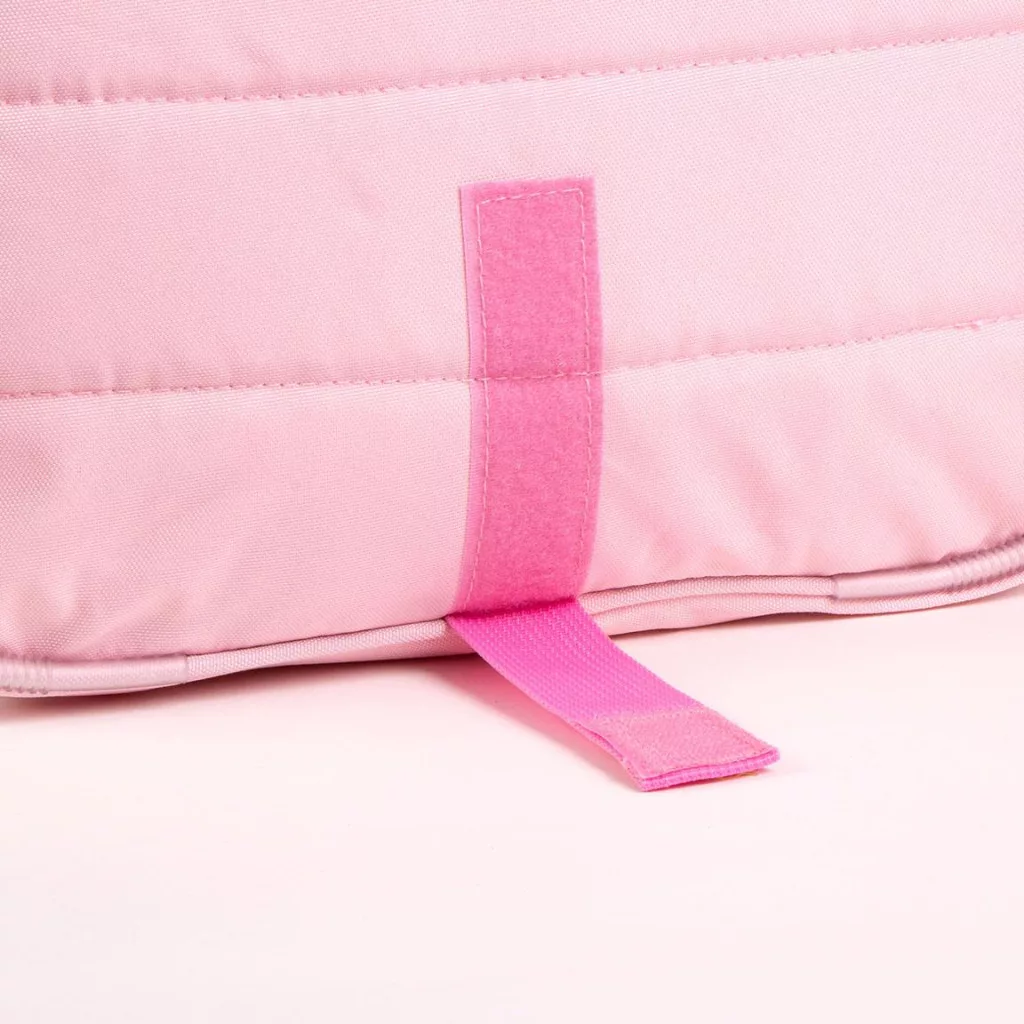 Kettő oldalsó zsebbel és két cipzáras tárolóval rendelkezik.