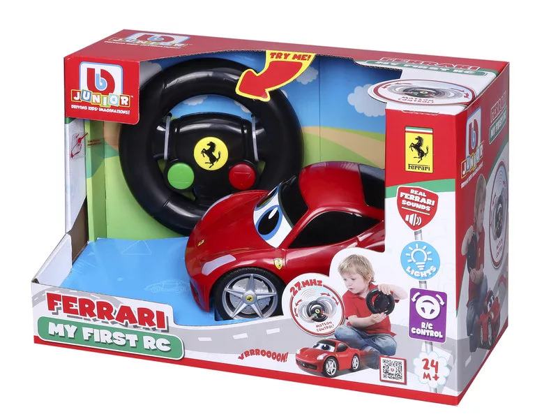 Megérkezett az első saját Ferrari! A Bburago Junior My First RC La Ferrari egy kicsiknek tervezett, könnyen irányítható távirányítós autó, biztonságos kormány-alakú vezérlővel és villogó fénnyel. Vidám motorhang, Ferrari dizájn, és igazi vroom-vroom élmény már óvodás korban.