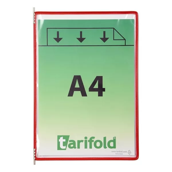 A bemutatótábla kiemelkedő minőségének köszönhetően flexibilis, strapabíró és rendkívül hatékony. A kétoldalú bemutatótábla a Tarifold tartókba tervezett prezentációs rendszerek részét képezi. A táblák műanyaggal bevont, acélhuzal kerete tartós és egyben rugalmas tartást eredményez. A tábla a fém forgócsapoknak köszönhetően a tartókba könnyen behelyezhető és eltávolítható. Alkalmas ipari üzemekben való használatra. A bemutatótábla védi a dokumentumokat a szennyeződésektől és a nedvességtől, ugyanakkor a dokumentumok könnyen cserélhetők.