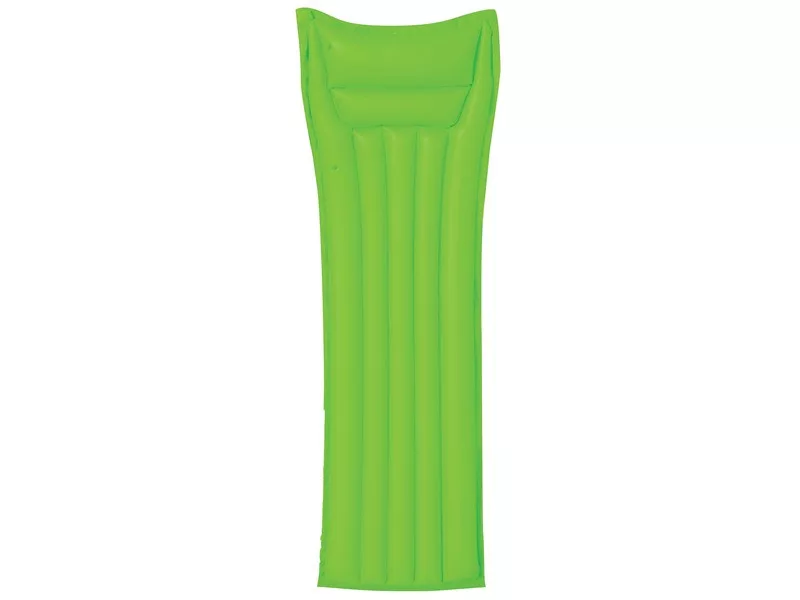 Pihend ki a fáradalmakat a forró napokon a medencében! Az egyszínű strand matrac egy hosszúkás, sárga, rózsaszín, zöld vagy kék színű matrac, ami puha PVC-ből készült. A matrac biztonsági szeleppel fújható fel, a fejtámla rész két légkamrára van osztva. A matrac hűvösebbé teszi a kánikulai napokat, a készlet egy öntapadós javítófoltot is tartalmaz.