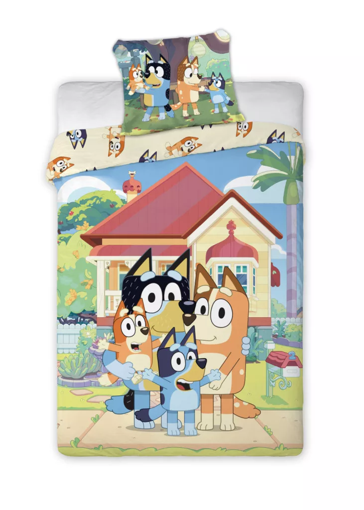 Bluey Family Home gyerek, ovis ágyneműhuzat 100×135cm, 40×60 cm