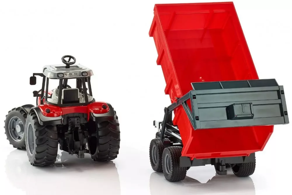 Az apró részletekig kidolgozott Bruder Massey Ferguson 7480 traktormodell, minden mezőgazdasági gép kedvelő szívét megdobogtatja. A híres piros-fehér traktor méretaránya 1:16, a traktor anyaga minőségi ABS műanyag. A billenőteknős pótkocsival gyerekjáték az ömlesztett anyagok (pl. homok) szállítása és kirakodása. A nagytérfogatú teknő hátrafelé billenthető, a leakasztott pótkocsi stabilitását a kihúzható támasztóláb biztosítja.