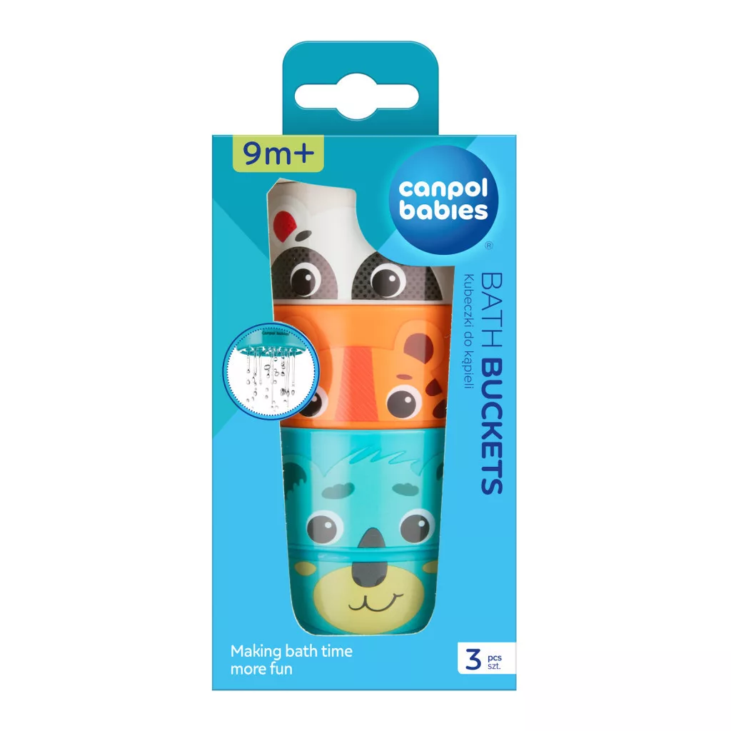 Legyen a Canpol babies aranyos, három vizes vödörből álló fürdőjáték kisbabád első pancsolós játéka! A HELLO LITTLE kollekcióból származó termék, támogatja gyermeked felfedezési és tanulási vágyának kibontakozását fürdés közben.