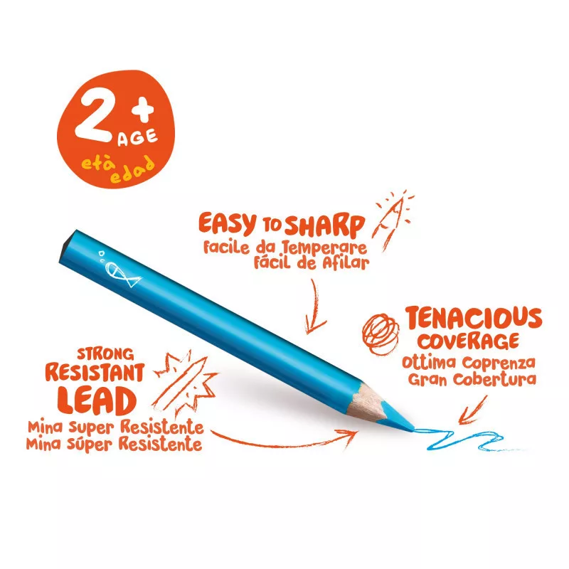 A Carioca olasz bébi színesceruzakészlet a legkisebbek számára készült. A ceruzák vastagok, három oldalúak, ami biztosítja a stabil és helyes ceruzafogást, ami a későbbi íráskészség megalapozásához elengedhetetlen. Strapabíró, remekül ellenáll az ütésnek, leesésnek, a helyek nem töredeznek. A készletnek szép, élénk színe van, mellyel élmény a rajzolás.
