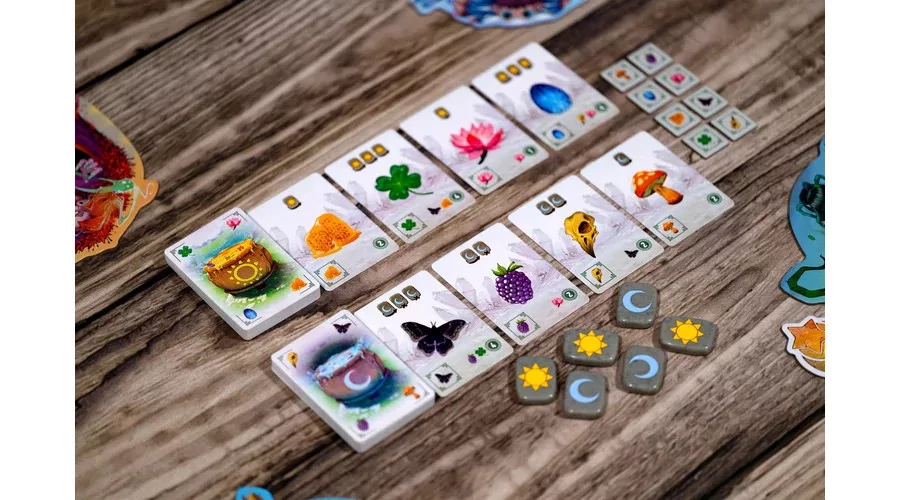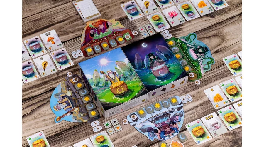 A Carnuta egy taktikus, mégis könnyed, kártyaalapú társasjáték 2–4 játékosnak, amelyben druidaként összetevőket gyűjtötök és kombináltok, hogy a szertartás végére a lehető legtöbb pontot szerezzétek. A győzelemhez okos döntésekre, jó időzítésre és a megfelelő alapanyagok összehangolására lesz szükség. Egy körben minden játékos két akciót választ a négy lehetőség közül: kártyákat húz, rúnaköveket szerez, kijátssza az összetevőket, vagy áthangolja a rúnáit. Az összetevők nappali és éji típusúak, kijátszásuk pedig a rúnakövek állásától függ, így a tervezés és a ritmusérzék kulcsfontosságú. A kártyák típusonként külön oszlopokba kerülnek, a pontozás pedig az így kialakított összetevő-kombinációkra épül: vannak lapok, amelyek a szetteket jutalmazzák, mások az egyedi gyűjtést erősítik, ezért többféle stratégia is életképes. A speciális kártyák – például a dzsókerként működő só – tovább növelik a variálhatóságot, és új döntési helyzeteket teremtenek.