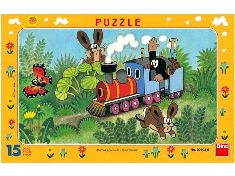 Kisgyermekeknek készült, keretes puzzle a népszerű Kisvakond figurával, mozdonyos jelenetben – 15 nagyobb, könnyen kezelhető darab.