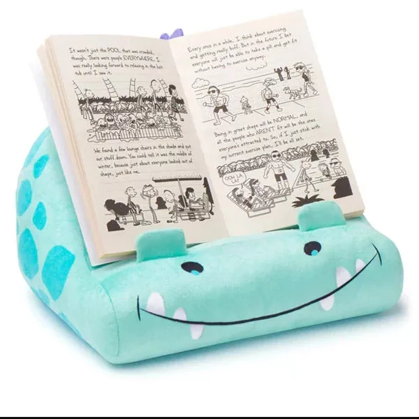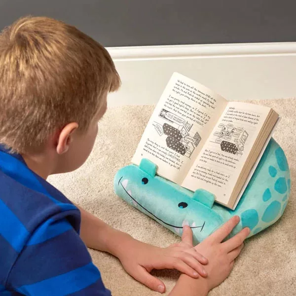 A pihe-puha dinós könyvkanapé tökéletes társ olvasáshoz, tanuláshoz vagy tabletezéshez! Formatartó plüss tartóként stabilan megtartja bármilyen méretű könyvet, e-könyv olvasót, tabletet vagy iPadet – otthon, utazás közben vagy bármilyen kényelmes helyen.