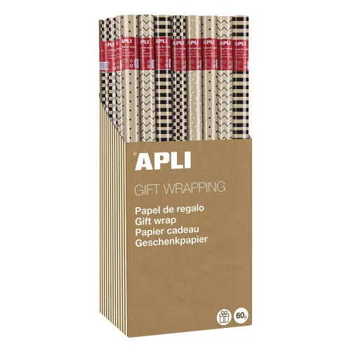 Díszcsomagoló APLI Kraft Black & White II tekercses 70x200 cm 55 tekercs/doboz vegyes mintákkal