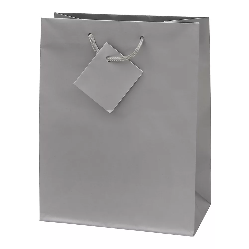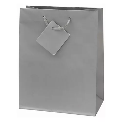 Ajándéktasak, M 18 x 23 x 10 cm méretben, ezüst színben, zsinór füles, ajándék kísérővel.