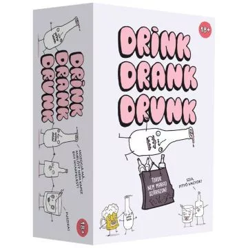 Egyszerű, humoros és függőséget okozó: egy doboz tele különféle mókával és kacagással. Játszd a barátaiddal, vagy vidd el magaddal a kocsmába és szerezz új barátokat! A Drink Drank Drunk partijáték az ivásról szól, mellébeszélni kár is. Gyűljetek össze és kezdődhet is a dínom-dánom!Játékidő: 20 - 200 percCsomagolás mérete: 10 x 15,5 x 6,5 cm