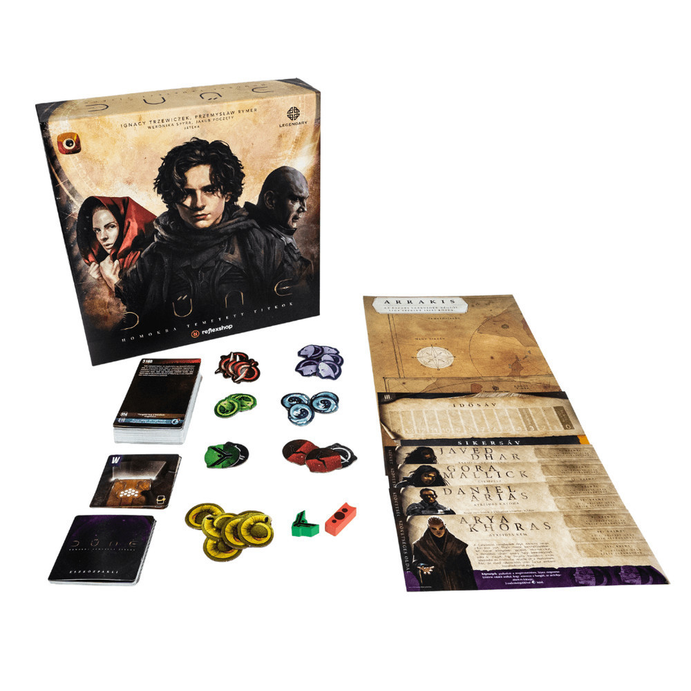Ugorjatok fejest a különleges történetvezérelt társasjátékba! A Dűne: Homokba temetett titkok egy kooperatív játék, amelyben csatlakoztok a Harkonnen-házzal szembeni ellenálláshoz, miközben több fejezeten keresztül megtapasztalhatjátok a Dűne kihívásokkal teli világát. Érjétek el a meghatározott célokat a fejezetek előrehaladtával és a különböző találkozások által. A fejezetek végén egy-egy állapotjelentést kell kitöltenetek, amely befolyásolja a történet alakulásának irányát.