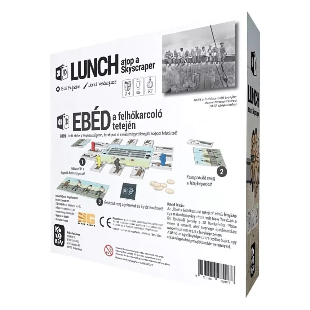 Az „Ebéd a felhőkarcoló tetején – LUNCH atop a Skyscraper” társasjátékban egy fényképész bőrébe bújsz, és egy ikonikus jelenet újraalkotásában mérheted össze a tudásodat. A cél, hogy az „Ebéd a felhőkarcoló tetején” hangulatát megidézve minél több pontot szerezz, és te készítsd el a legjobban sikerült felvételt. Gyűjts építőmunkás-lapkákat, majd rendezd őket a megfelelő sorrendbe, hogy összeálljon a képed. A pontokat a 8 ismertetőjegy leghosszabb, megszakítás nélküli sorozataiért kapod.
