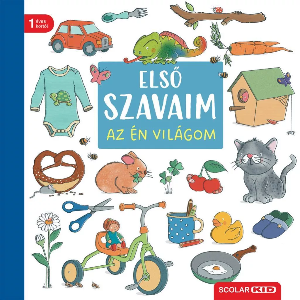 Könyvünkben az első szavakat gyűjtöttük össze a baba környezetéről. Szerepelnek benne többek közt állatok, növények, ételek, tárgyak megnevezései.