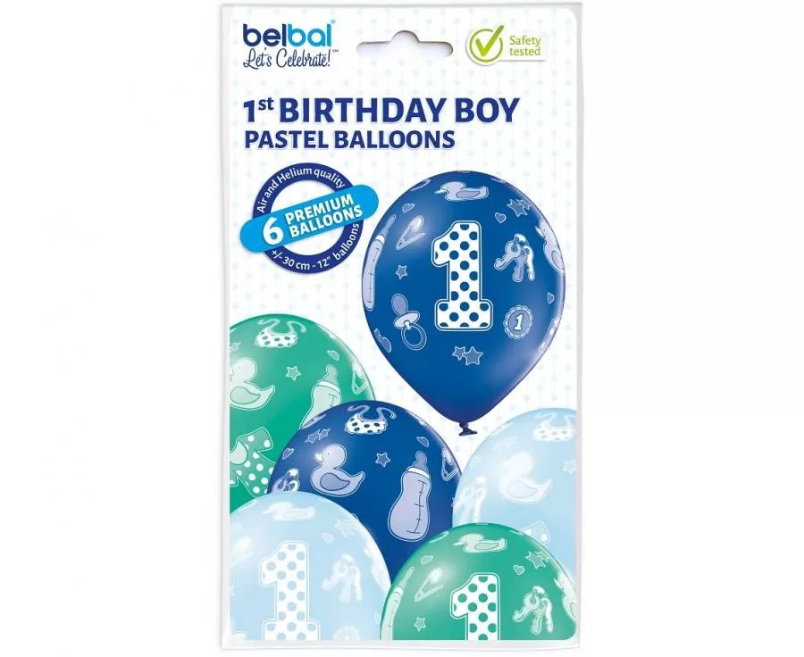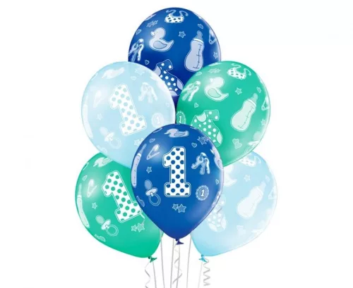 1st Birthday Boy léggömb, lufi 6 db-os 12 inch (30cm)