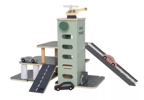 Versenyezz barátaiddal a rámpán, ahol két autó egymás mellett haladhat. Ki lesz a gyorsabb? Ezután tankoljátok vagy töltsétek fel az autót, majd a lifttel újra a parkolóház tetejére juthattok. Ha az autók útközben összekoszolódtak, vegyétek az irányt az alsó szinten található autómosóba. A játékkészletben egy helikopter is található.