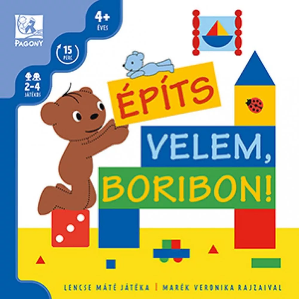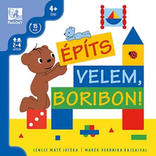 Boribon kiborította színes építőkockáit, és szeretne egy szép házat, kisautót vagy hajócskát építeni a kis kék mackójának. Segítsetek neki: dobjatok a dobókockákkal, és rakjátok egymás tetejére minél magasabb toronyba őket a szabályoknak megfelelően. Persze időnként kockáztatni kell, és arra is ügyeljetek, hogy fel ne boruljon a torony… ügyességetek jutalma pedig 1 vagy 2 építőelem lesz. Akinek legelőször sikerül 7-et összegyűjteni, ahhoz költözik be a kék mackó! A játék egyszerre fejleszti az ügyességet és készteti a kicsiket egyszerű döntések meghozatalára, miközben élvezettel, kreatívan építgetnek.