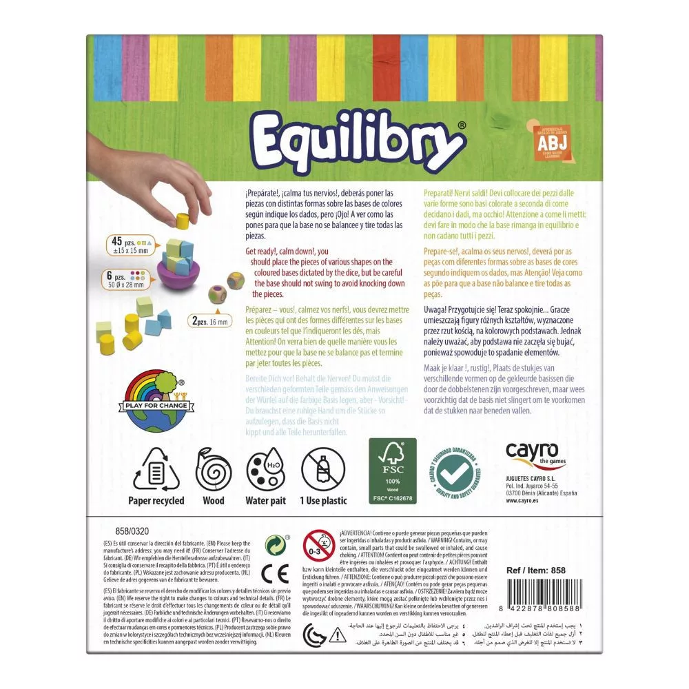 Az Equilibry egy különleges ügyességi játék, amely már ránézésre is kihívást ígér: színes formák, ingatag talapzat és a dobókocka kiszámíthatatlan utasításai várják a játékosokat. Az első darabok még könnyedén elhelyezhetők, de ahogy épül a szerkezet, egyre nagyobb lesz a feszültség. Vajon ki tudja úgy rakni a következő elemet, hogy az egész torony ne dőljön le?