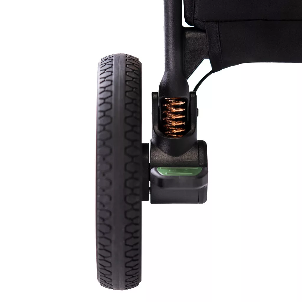 • Külön fékrendszerrel ellátott, jobb oldalt piros jelzéssel a fék és bal oldalt zölddel a kioldás, így a hátsó kerekek között nincs összekötés, tehát magasabb embereknek vagy gyorsan sétálóknak is ideális választás