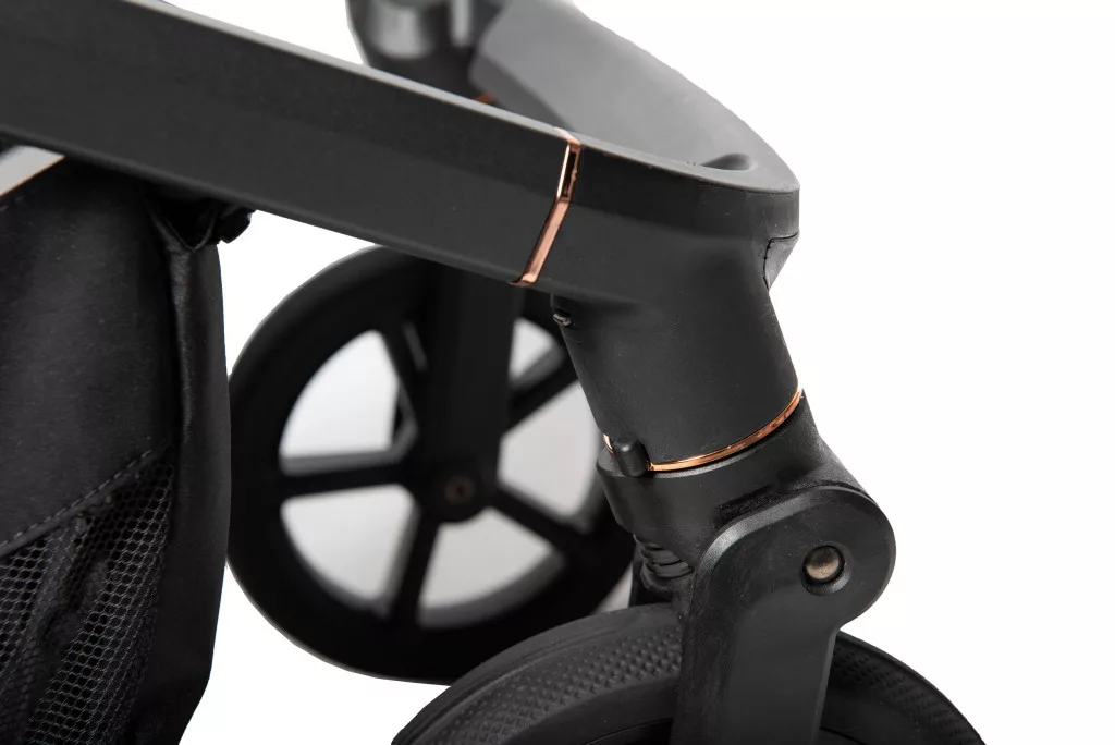 • Teleszkópos tolókar: Állítható magasság, hogy minden szülő számára kényelmes legyen a babakocsi irányítása.