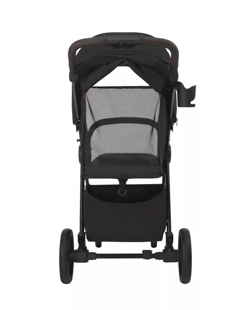 • A babakocsi kormányát újratervezték barna ecobőr és védőelemekkel látták el, hogy megakadályozzák az esetleges karcolásokat összecsukás és a földre helyezés során.