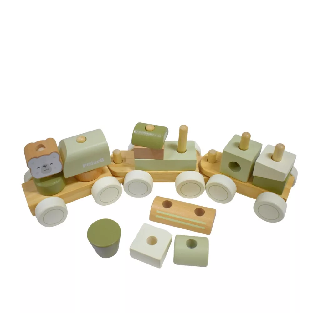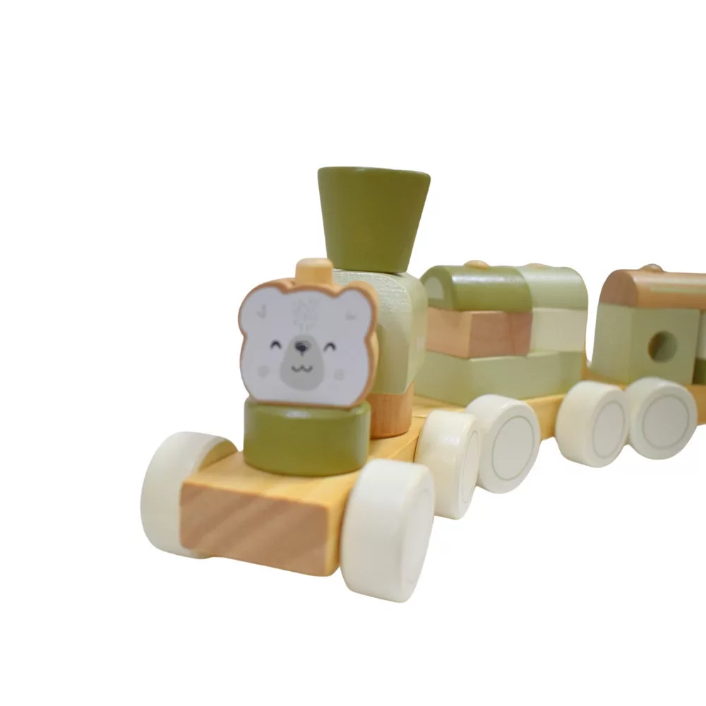 A vonat egy mozdonyból és két vagonból áll, melyek egymásba illeszthetőek. A gyerekek gyakorolhatják finommotorikus képességeiket, koordinációs, logikai- ,gondolkodási- és megfigyelési képességeiket.