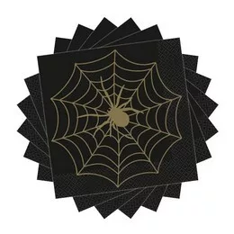 Fekete Arany Pókháló Mintás Halloween Parti Szalvéta – 33×33 cm, 16 db