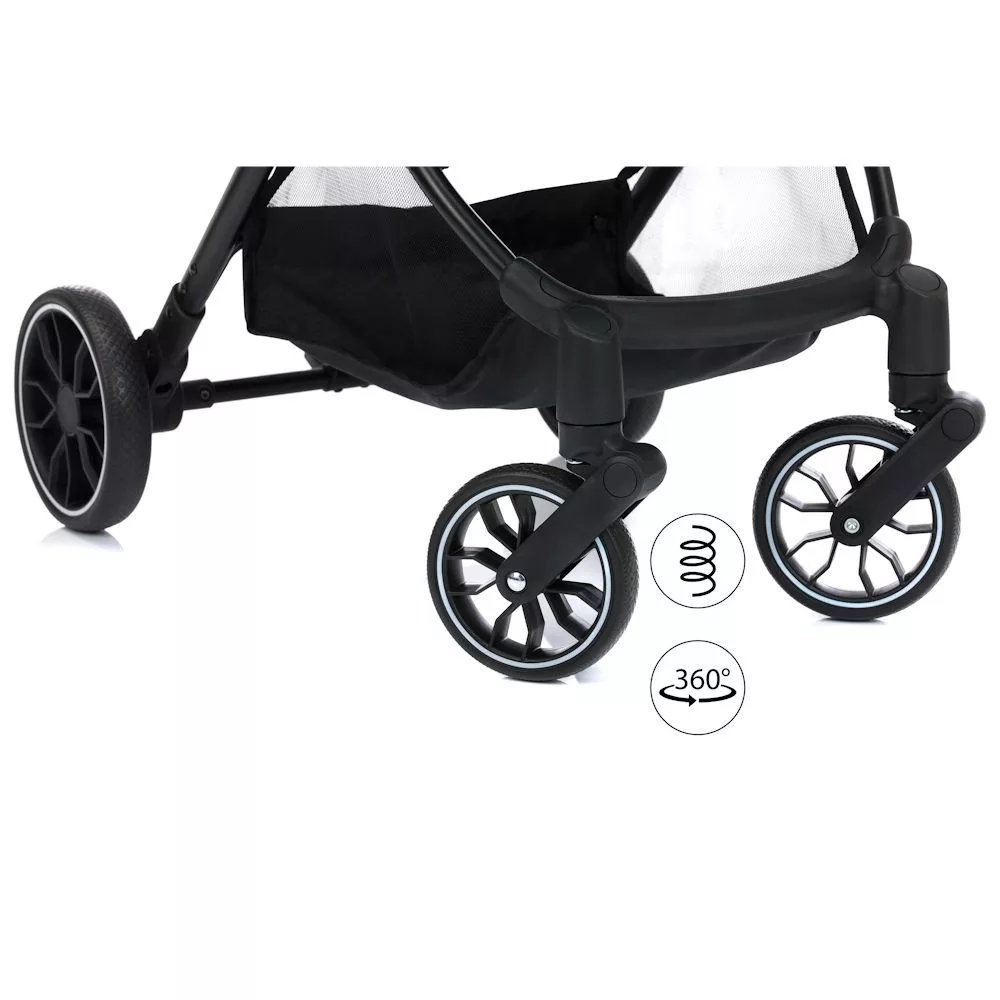 Egyesíti magában a modern babakocsi összes kényelmi funkcióját, mégis kompakt és könnyû. Kis összecsukható méretének köszönhetõen bármilyen autóban elfér, és alig foglal helyet otthon. Imádni fogod a nagy kosarat vásárlás közben. Különleges elõnye a kihúzható gurulós funkció, amely lehetõvé teszi, hogy összecsukva egyszerûen magad után húzd a babakocsit, ha a kicsi egyedül szeretne sétálni.A forgó kerekek könnyedén legyõzik az összes felületet. Az állítható lábtartó és az állítható háttámla alkalmazkodik a gyermeked igényeihez. Ha gyermeked szundikálni szeretne út közben, a háttámlát fekvõ helyzetbe, a lábtartót pedig felsõ helyzetbe állíthatod, így kényelmes fekvõfelületet hozol létre.A párnázott 5 pontos biztonsági övvel és a levehetõ elsõ rúddal mindig biztonságban vagy az úton. A könnyen kezelhetõ rögzítõfék biztosítja, hogy a babakocsi biztonságosan mozdulatlan maradjon a megállások során. Ha a babakocsi nincs használatban, gyorsan és egyszerûen, egyetlen kézzel összecsukható.Termékjellemzõk:- Görgõs funkció- Egykezes összecsukórendszer- Szállítási zár- Maximális terhelés: 22 kg-ig terjedõ gyermekek számára tesztelve.- Babakocsi súlya: 6,8 kg- Kerékátmérõ: elsõ kerék 15 cm, hátsó kerék 20 cm a stabil és sima utazás érdekében.- Állítható háttámla- Nagy kosár- Forgó kerekek- 5 pontos biztonsági öv és levehetõ elsõ rúd- Könnyen használható rögzítõfék
