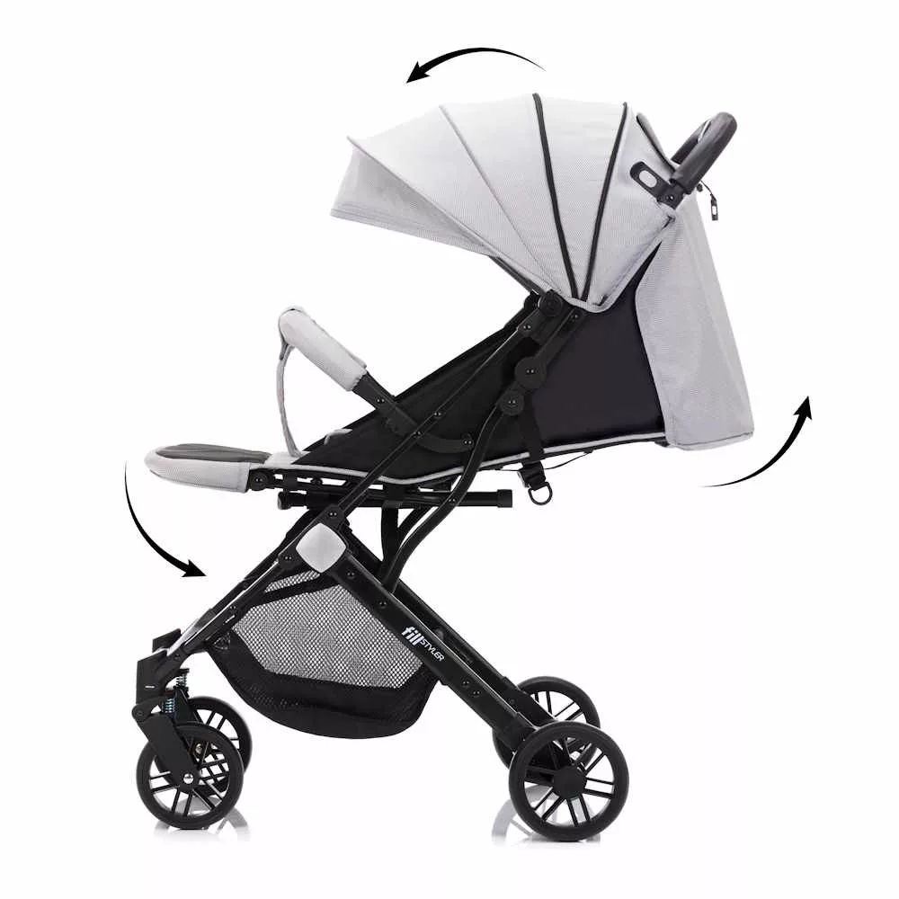 Szereted a modern dizájnt és a praktikus, okos megoldásokat, amelyek megkönnyítik a mindennapjaidat? Mobilis életet élsz, állandóan úton vagy, és szeretnél minden helyzetre felkészülni anélkül, hogy egy vagyonba kerülne? Akkor az agilis Styler tökéletes társ lesz számodra és gyermeked számára. Legyen szó városi sétáról, nyaralásról vagy a mindennapokról, a fill Styler minden helyzetben lenyûgöz. Minden kényelmi funkciót kínál, amelyre egy modern babakocsinak szüksége van, miközben rendkívül kompakt és könnyû marad. Összecsukva kis méretének köszönhetõen bármilyen autóba befér, és otthon is kevés helyet foglal. Vásárláskor értékelni fogod a nagy kosarat. Különlegessége a kihúzható húzókar, amellyel könnyedén magad után húzhatod a babakocsit, amikor a kicsi néhány métert maga szeretne sétálni.Felfüggesztésének és 360°-ban forgó kerekeinek köszönhetõen minden felülettel könnyedén megbirkózik. A kétirányú állítható lábtartó és a fokozatmentesen állítható háttámla alkalmazkodik gyermeked igényeihez. Ha a kicsi egy séta közben szeretne szundikálni, a háttámlát fekvõ helyzetbe állíthatod, a lábtartót pedig a legmagasabb állásba emelheted, így kényelmes fekvõfelületet biztosítva. A kihúzható kupola árnyékot és védelmet nyújt a nap és a szél ellen. A párnázott 5 pontos biztonsági övvel és a levehetõ elsõ karfával mindig biztonságban vagytok útközben. Megállásoknál a könnyen használható rögzítõfék gondoskodik arról, hogy a babakocsi stabilan helyben maradjon. Ha a sportkocsit nem használod, egy kézzel gyorsan és egyszerûen összecsukható.Termékjellemzõk:Kompakt sport babakocsiFelfüggesztett kerekekNagyon könnyû és kis méretre csukhatóLevehetõ ökobõr tolókar-borításokNagy kosárHúzókarEgykezes összecsukó mechanizmusFokozatmentesen állítható háttámlaLevehetõ karfaKihúzható kupolaMûszaki adatok:Méretek: 110 × 80 × 51,5 cmÖsszecsukott méret: 22 × 67 × 51,5 cmHátsó kerék mérete: 16,5 cmElsõ kerék mérete: 15 cmSúly: 6,7 kg6 hónaptól kb. 36 hónapos korig (15 kg-ig) alkalmasMax. kosárterhelés: 4,5 kgEVA kerekekHáttámla: 44 cmÜlõszélesség: 32 cm