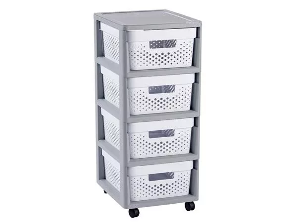 Fiókos tároló, újrahasznosított műanyag, 4x11 l, CURVER "Infinity", szürke/fehér