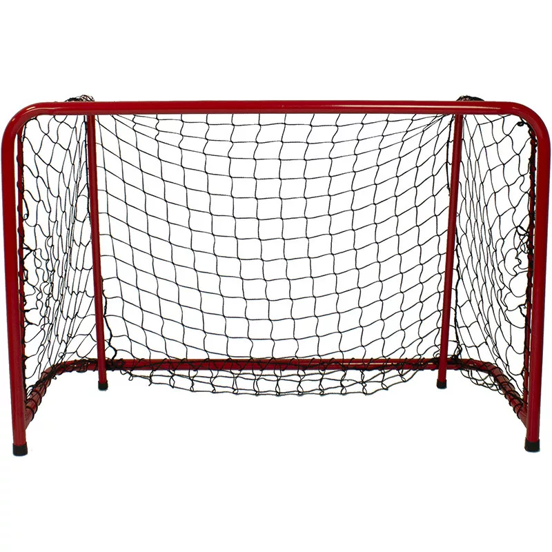 Fém, piros porszórással készült floorball kapu hálóval. A kapu és a háló beltéri használatra javasolt.