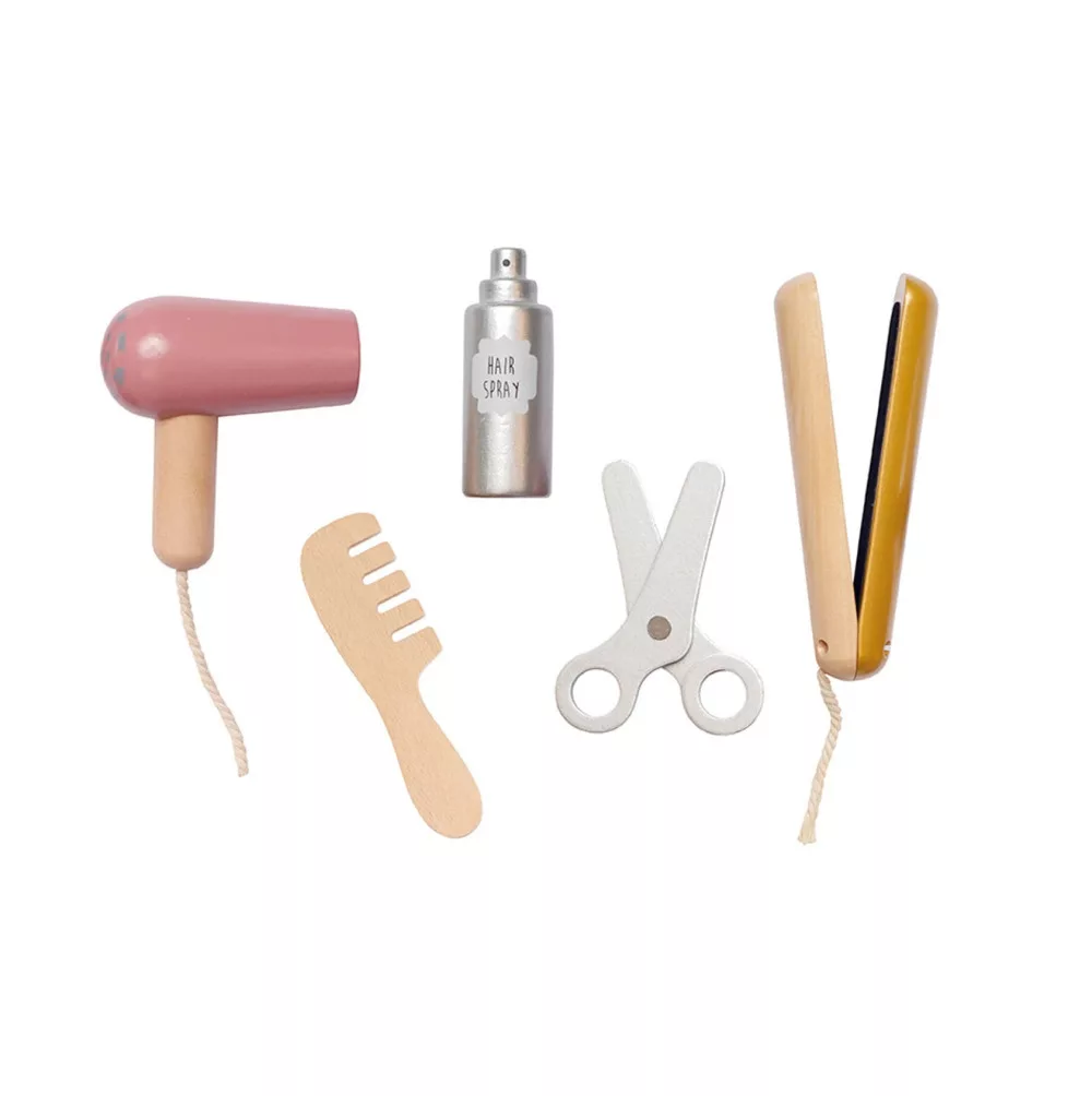 Aranyos fodrászkészletünkben minden megtalálható, amire szükséged van a különböző mókás frizurák vágásához és formázásához. Vágj, fújj és simíts, csak a képzeleted szab határt annak, hogy milyen őrült vagy gyönyörű frizurákat szeretnél készíteni. Tűzd fel a hajad cuki hajcsattokkal vagy hajgumikkal. Fodrászkészletünkkel gyorsan profivá válhatsz a hajvágásban. Az öv tépőzáras pánttal van ellátva, amelyet könnyen a csípő köré rögzíthetsz, és máris kezdheted a vágást és formázást!