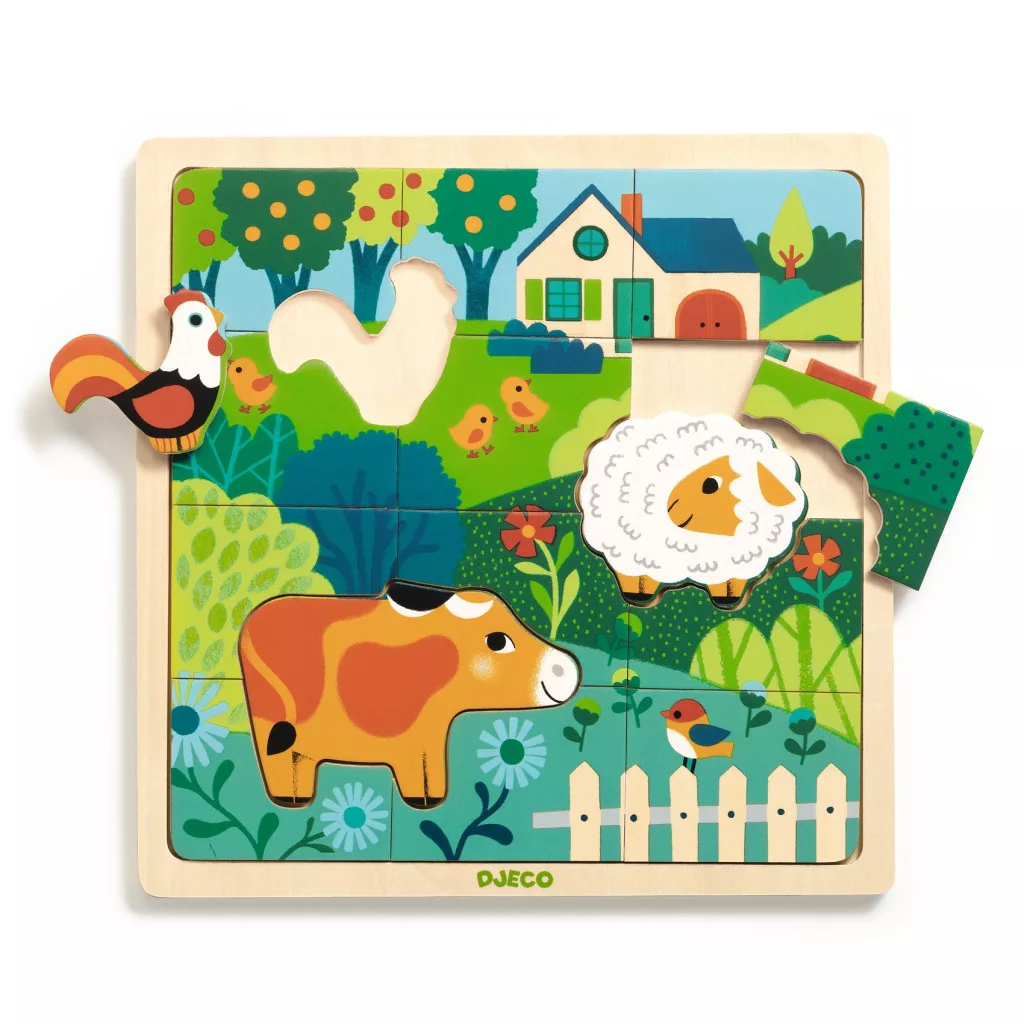 Djeco 1825 Formaillesztő, formaberakó - Tanyasi állatok - Puzzlo farm - FSC 100%