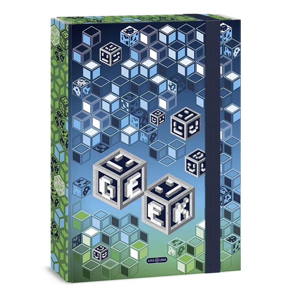 A/4 méretű füzetbox. Kemény, tartós kartonból, 4 cm-es gerinccel, fényes fóliával, 7 mm széles gumipánttal. Belseje egy színnel nyomott. Füzetek, iratok tárolására .