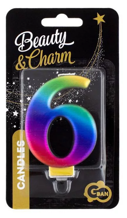 Színes 6-os Galaxy számgyertya, tortagyertya