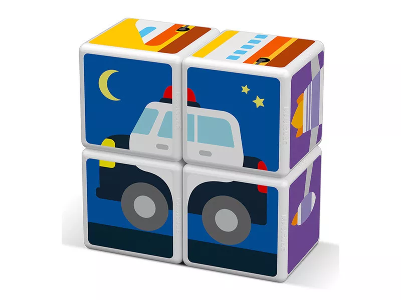• Tartalom: 7 db mágneses, mintás építőkocka közlekedési járművekkel