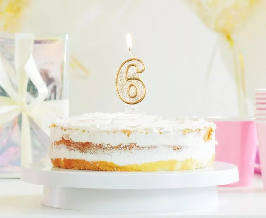 Arany csillámos 6-os Gold számgyertya, tortagyertya