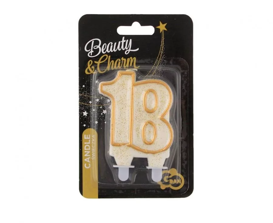 Arany csillámos 18-as Gold tortagyertya, számgyertya