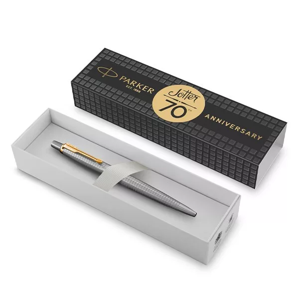 2024-ben ünnepeljük a Parker Jotter 70. évfordulóját, egy jelentős mérföldkövet ennek az ikonikus tollnak a történetében. 1954 óta a Jotter különböző kivitelben jelent meg, de időtlen, elegáns sziluettje változatlan maradt, így ma is az egyik legismertebb toll a világon. Ennek elismeréseként a Parker egy új kivitelben mutatja be a tollat, amely kiemeli annak tartós vonzerejét és gazdag örökségét. A Jotter 70. évfordulós kiadása arany díszítéssel kapható, és modern gravírozott cizellált mintával van ellátva. Ez a különleges kiadás méltó tisztelgés a Jotter öröksége előtt.
