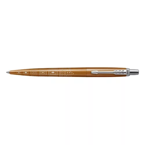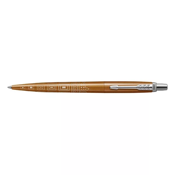 A Parker Jotter család elhívja egy világkörüli kalandra, amely harmadik állomása Róma 3000 éves építészetét és dekorációját idézi meg. A toll testén lévő lézergravírozott design a Pantheon egyedülálló kupolájának mintáját és az ősi város látképét ábrázolja. A selyem bronz lakkozott felület kényelmes írást biztosít. A Jotter Róma golyóstoll az utazás szerelmeseinek készült, hogy inspirációt adjon a világ felfedezéséhez.