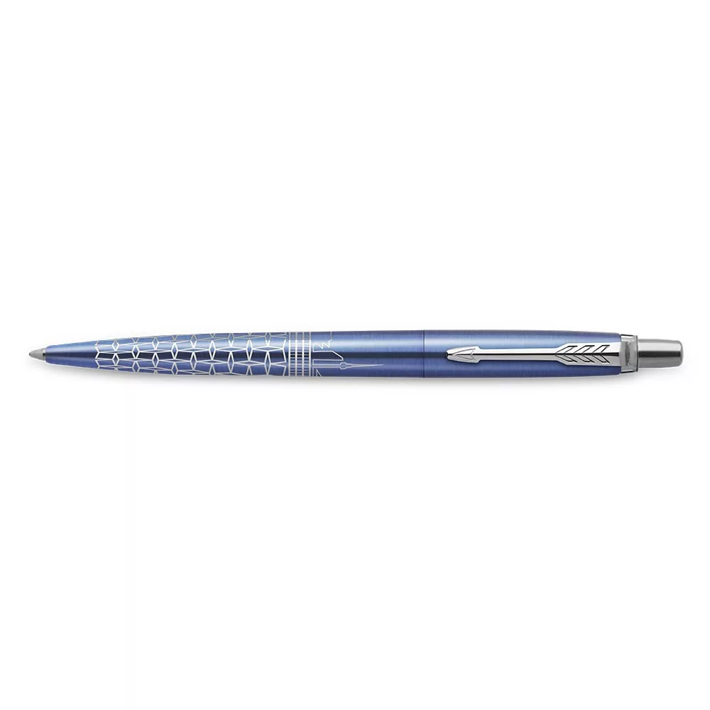 A Parker mesteri kivitelezésének lenyűgöző példájaként az egyedi dizájn precízen lézergravírozva jelenik meg a toll testén. Az indigó kék színű lakkozás, a sima írásélmény és a Jotterre jellemző ikonikus „kattanás” teszi teljessé ezt az elegáns tollat.