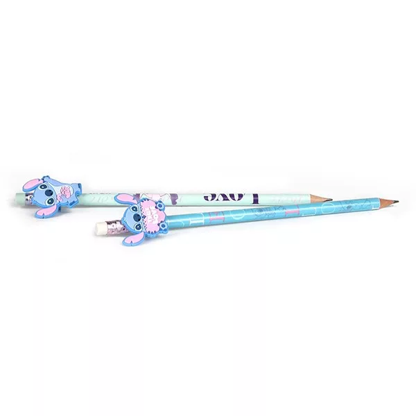 Grafitceruzák vidám és aranyos Stitch mintával. A puha, fehér radír lehetővé teszi az írás vagy rajz eltávolítását a papír sérülése nélkül. A teljes hosszban ragasztott ceruzabél ellenállóbb a töréssel szemben. A kerek forma kényelmes fogást biztosít írás vagy rajzolás közben.