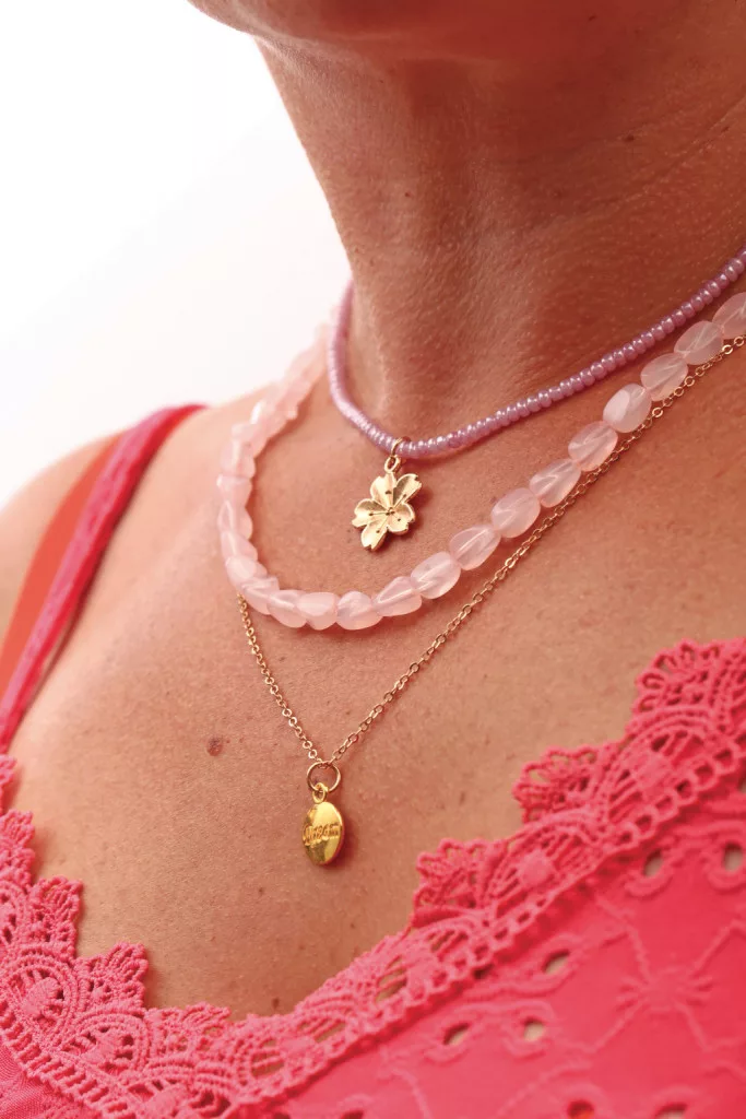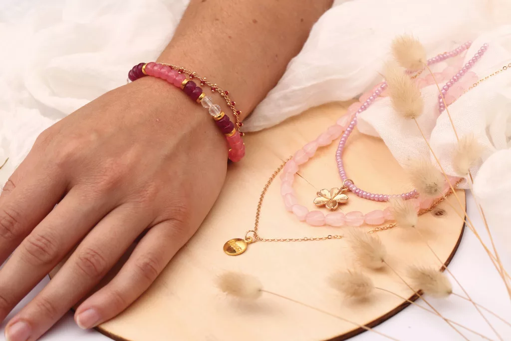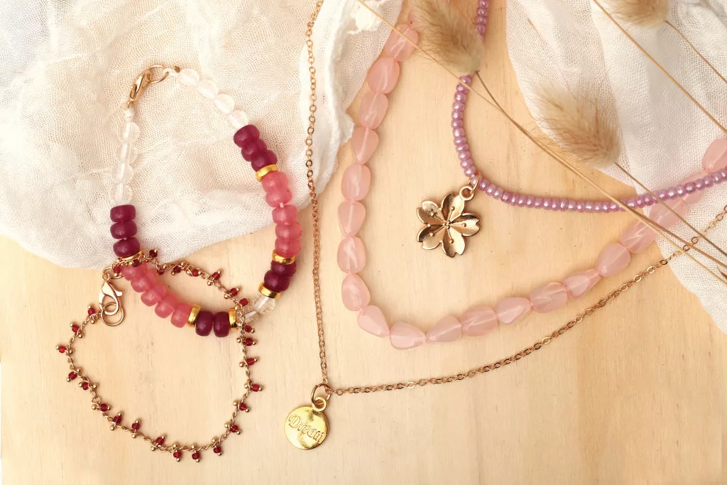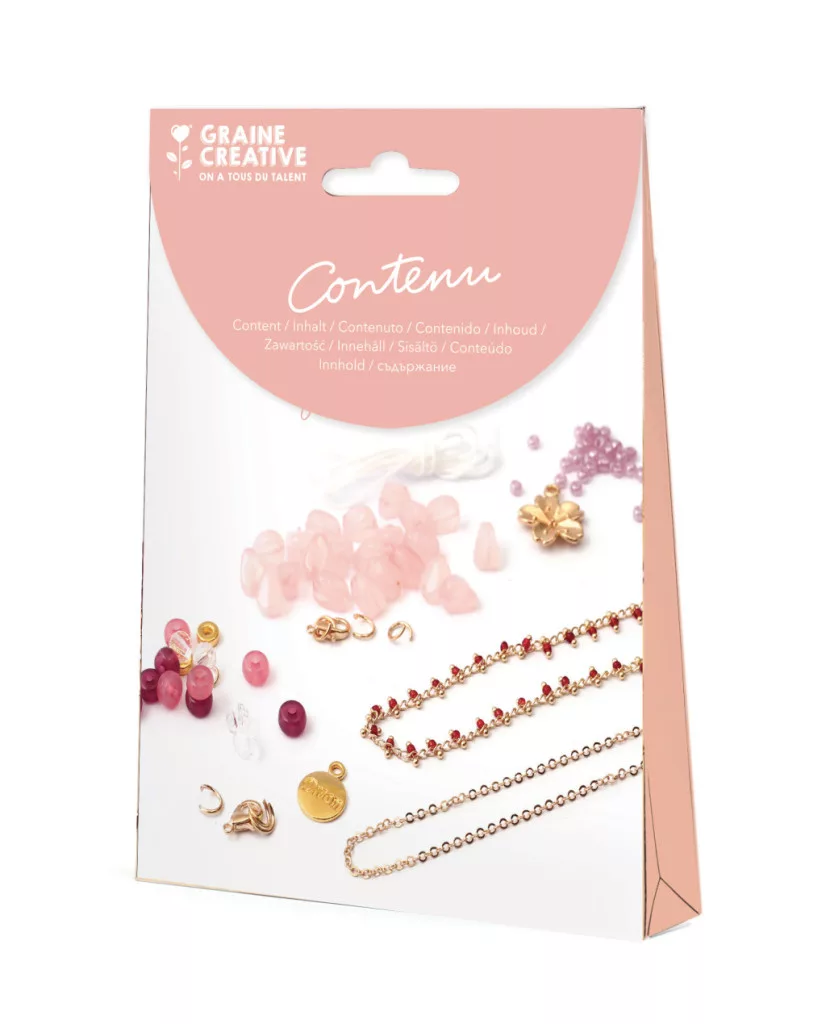 Ez a készlet romantikus hangulatú, rózsaszín árnyalatú ékszerek készítéséhez készült. A gyöngyök, láncok és díszítőelemek segítségével többrétegű nyaklánc és karkötők is készíthetők. A különböző méretű gyöngyök játékossá és elegánssá teszik az elkészült darabokat. Az alkotás folyamata kreatív és nyugodt kikapcsolódást nyújt.